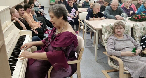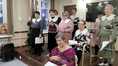 Наконец-то состоялся дебют хора "Надежда". Наши жительницы каждый день репетировали, сами выбирали репертуар, придумали название хора, обдумывали сценические образы. И, конечно, очень переживали, как всё пройдёт. А прошло выступление очень хорошо: радостно и душевно. В завершение зрителей ждал сюрприз. Хористка Марина Шубина исполнила песню под собственный аккомпанемент. Пели все. Браво! Пожелаем участницам дальнейших успехов!!!! | |