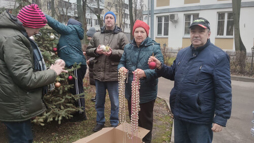 В нашем социальном доме предновогодняя атмосфера! Жители дружно взялись за украшение уличной ёлки - и теперь она сияет яркими огоньками, радуя всех. Кто-то подготовил игрушки, кто-то помог развесить гирлянды, а кто-то руководил процессом с мудрым советом. Все молодцы! | |