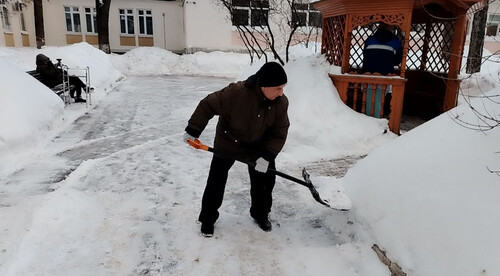 Благодаря нашим усилиям теперь жители нашего учреждения, включая девушек, передвигающихся на инвалидных колясках, могут свободно ездить по территории и наслаждаться красотой зимнего утра. Каждая расчистка дорожки приближает нас к общему благу и создает условия для комфортной и безопасной прогулки!»