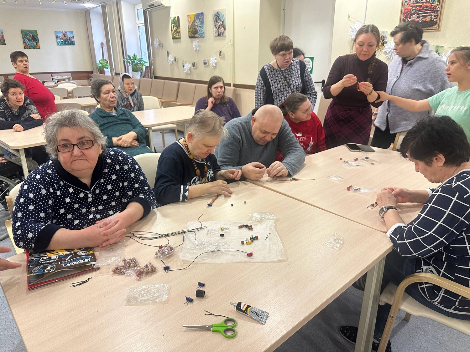 В воздухе витала атмосфера сосредоточенности с радостными возгласами: "Смотрите, какой у меня получается!", "А как лучше сделать вот здесь?", "Мне кажется, здесь не хватает синей бусинки!"