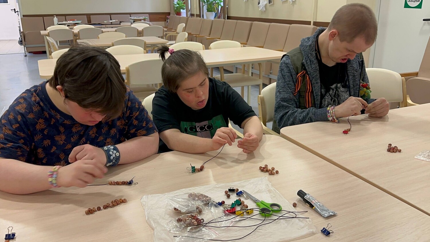 К нам в гости пришел замечательный волонтер Екатерина и провел увлекательный мастер-класс по изготовлению браслетов из деревянных бусин. Глаза ребят искрились любопытством, руки неуверенно, но старательно перебирали бусины, выбирая для своего индивидуального и оригинального украшения.