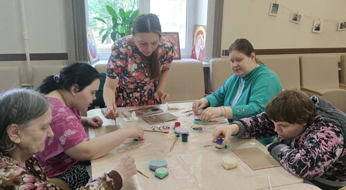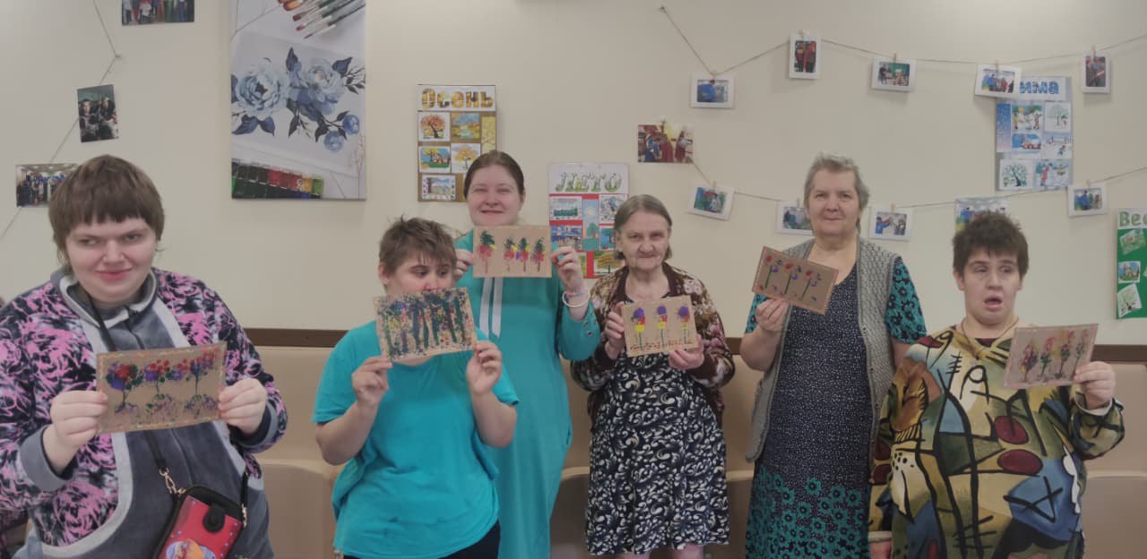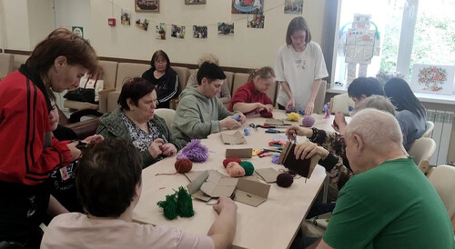 Порадовали сегодня наших жителей волонтёры из БФ "Второе дыхание". Провели два мастер-класса: рисовали с помощью штампов и делали игрушки из помпонов. Все участники ушли с подарками, сделанными своими руками. Здорово! Спасибо! | |