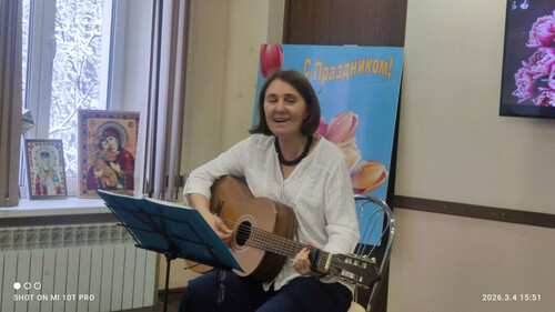 Концерт в преддверии 8 Марта стал трогательным и радостным событием в нашем доме, объединившим любовь, музыку, поэзию и песни. Исполнительница авторской песни Вера Полонская под аккомпанемент гитары донесла самые главные слова и эмоции, посвящённые женской красоте, мудрости и вдохновению так проникновенно до каждого, что слушатели на лету подхватывали каждое слово и дружно подпевали любимые песни. Дружеская встреча наполнила всех праздничным весенним настроением! | |