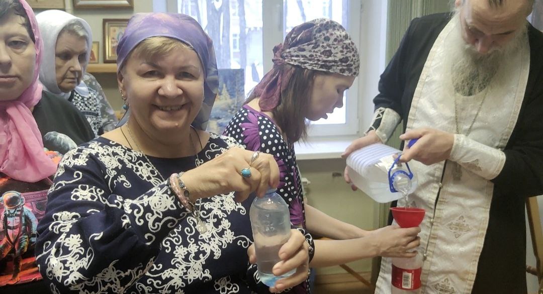 Январь богат на православные праздники. В нашем доме действует молельная комната, которую периодически посещают жители. В этот раз поводом стал молебен в честь праздника Крещения Господня. Наши жители пришли, чтобы помолиться, причаститься, набрать освящённой воды. Отец Константин исповедовал наших верующих, побеседовал с ними празднике, о молитвах. "Такие беседы очень помогают мне и моим подругам обрести гармонию; становятся источником духовной силы, утешения и надежды",- поделилась Галина Василенко. | |