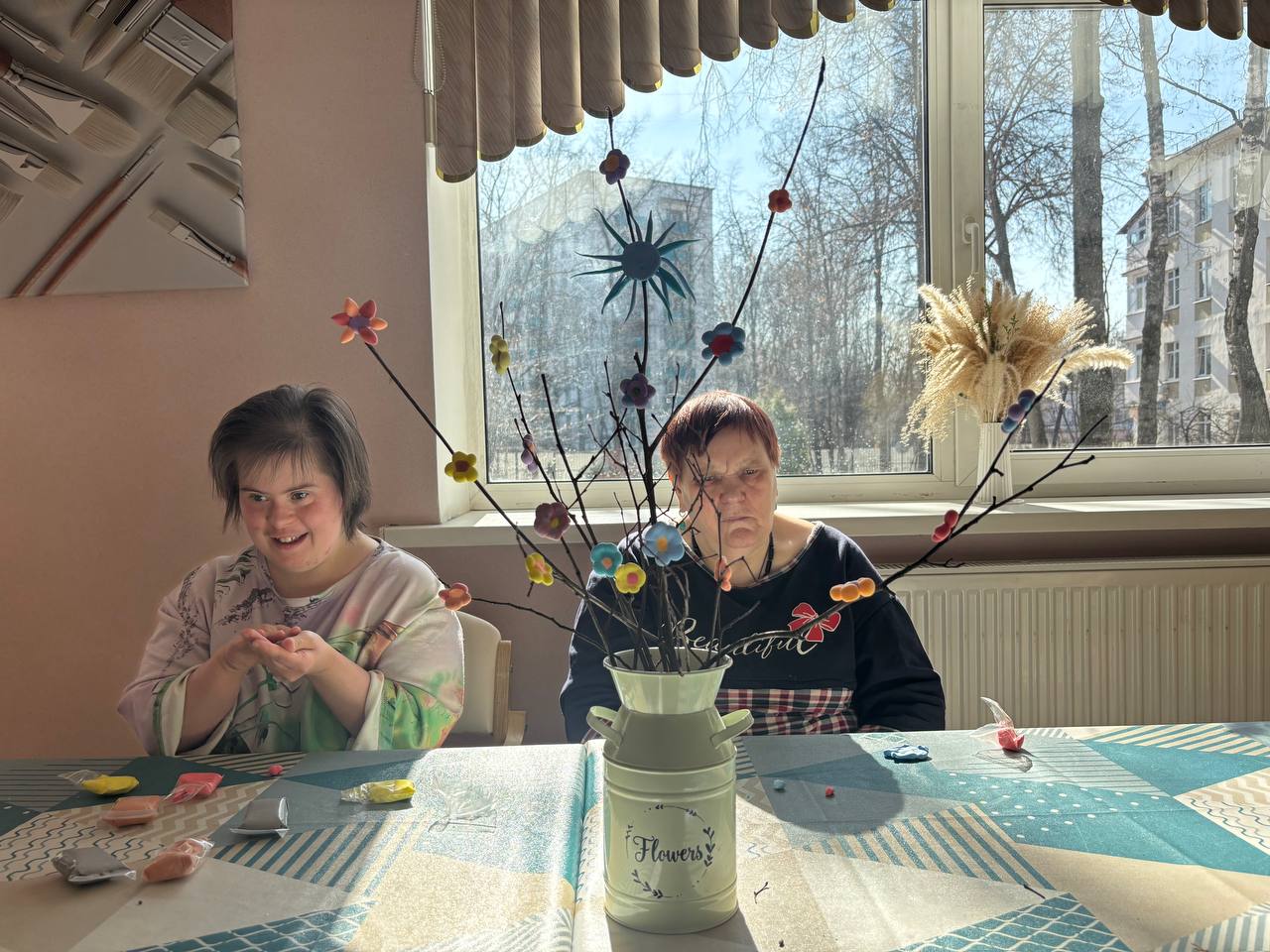 В нашем уютном доме воцарилась настоящая весна! Сегодня вместе с нашими замечательными жителями мы создали очаровательную цветочную композицию из нежных веточек и волшебного воздушного пластилина. Каждая деталь наполнена теплом и творчеством — это настоящий праздник пробуждающейся природы! | |